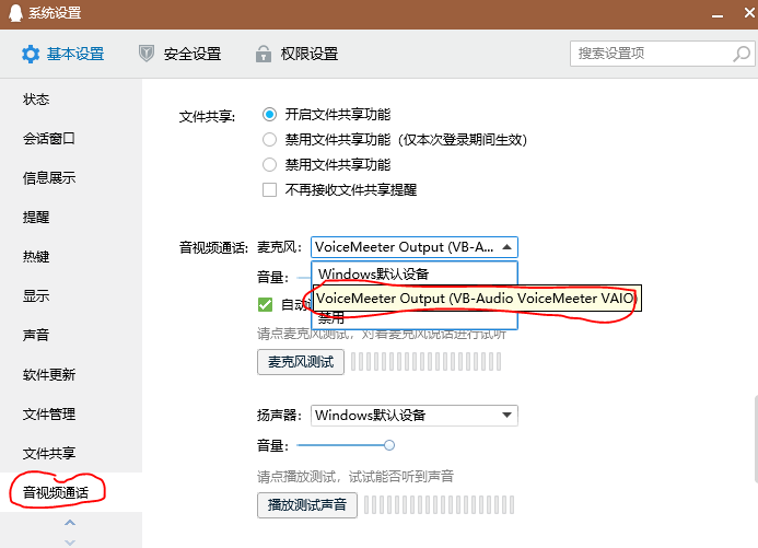 实现QQ语音通话变声,需要在QQ的设置里下拉找到“音视频通话”,将麦克风设置为包含voicemeeter和output文案的设备即可。